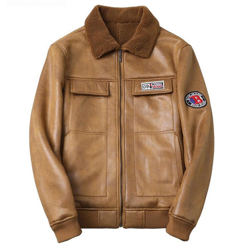 Men Winter Warm Suede Flight Bomber Jackets And Coats Fleece Lined Thick Thermal Faux Fur Parkas Outerwear Big Size 4XL