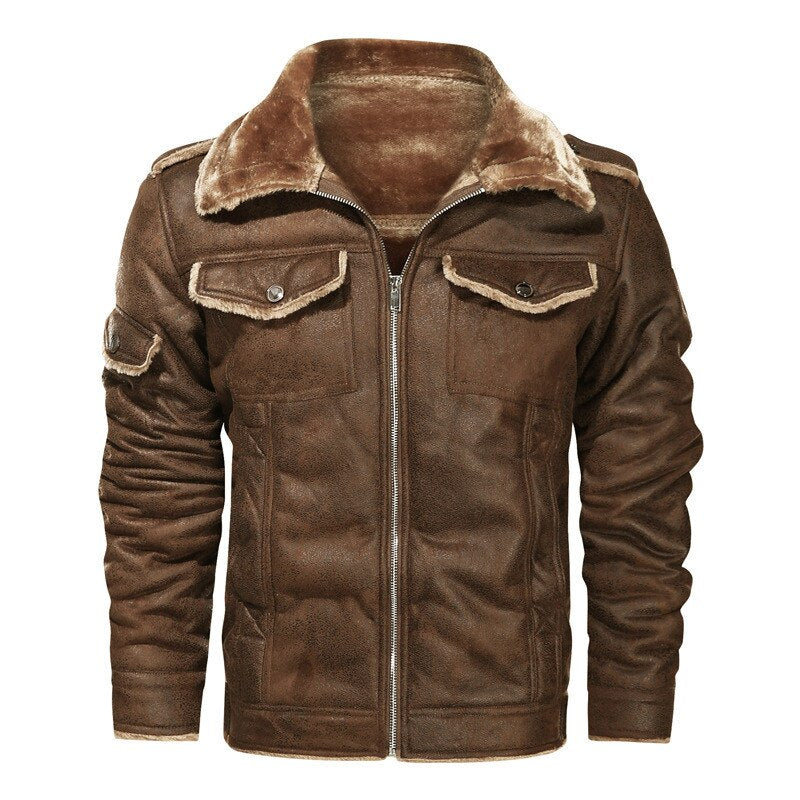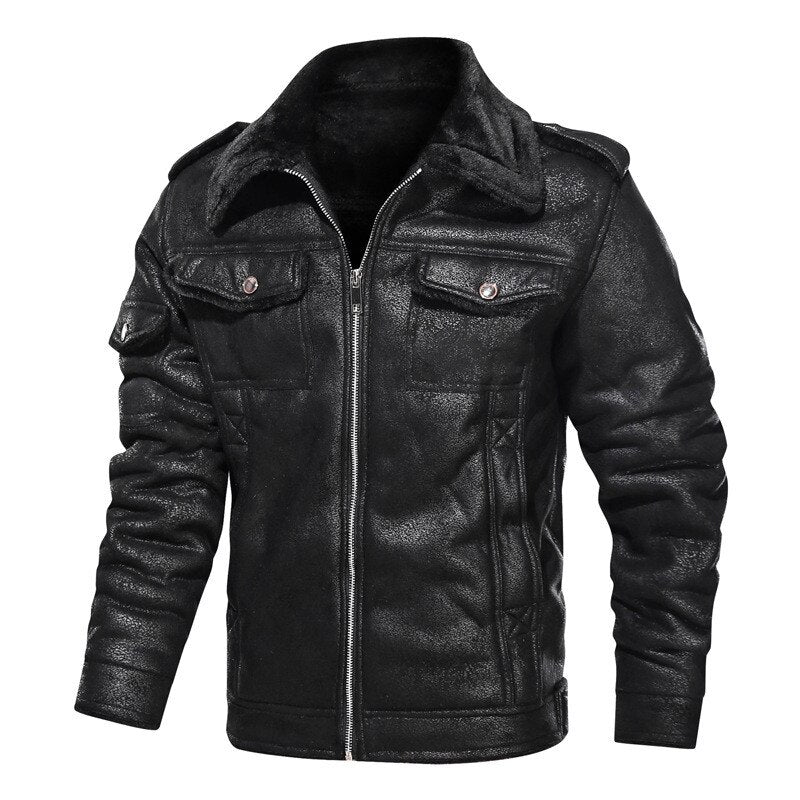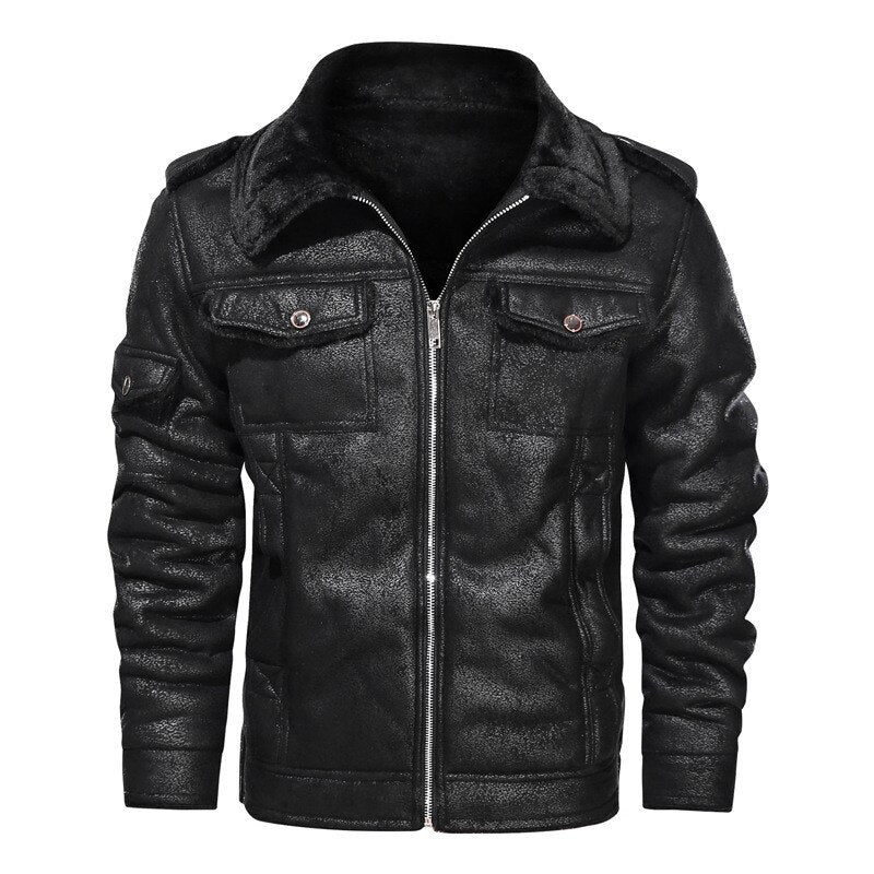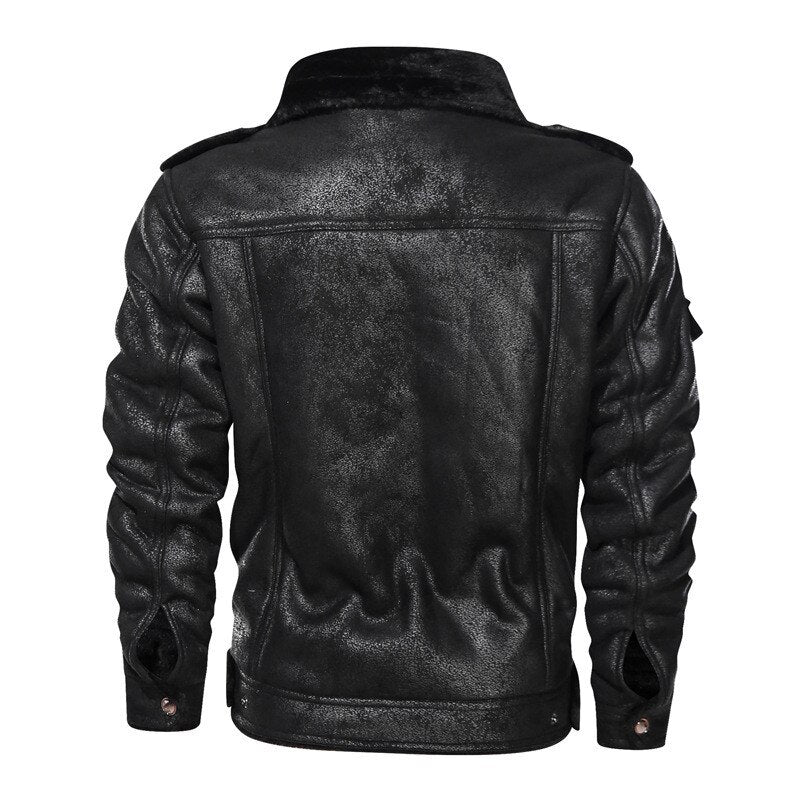 Retro Suede Fur Fleece Thick PU Coats Biker Faux Leather Outerwear Mens Leather Jackets Turn Down Collar Motorcycle Zipper Male