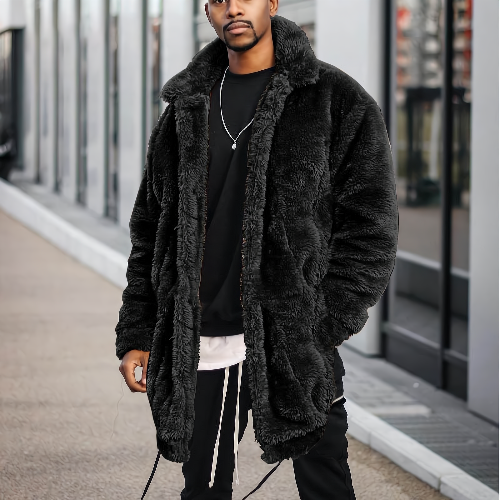 Mens Jacket Winter Fleece Windbreakers Hip Hop Streetwear Solid Color Plush Thicken Warm Men Coat Male Long Cardigan